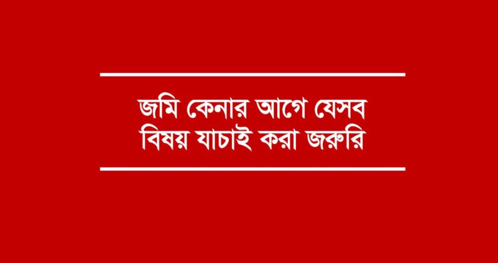 জমি কেনার আগে কিছু বিষয়ে সতর্কতা অবলম্বন করা খুবই জরুরি। তা নাহলে ভবিষ্যতে নানা সমস্যা তৈরি হতে পারে। মামলা মোকদ্দমাসহ জমি পর্যন্ত বেহাত হয়ে যেতে পারে। জমি কিনেও হতে পারেন প্রতারণার শিকার। তাই জমি কেনার আগে যে বিষয়গুলো অবশ্যই যাচাই করে নিতে হবে।